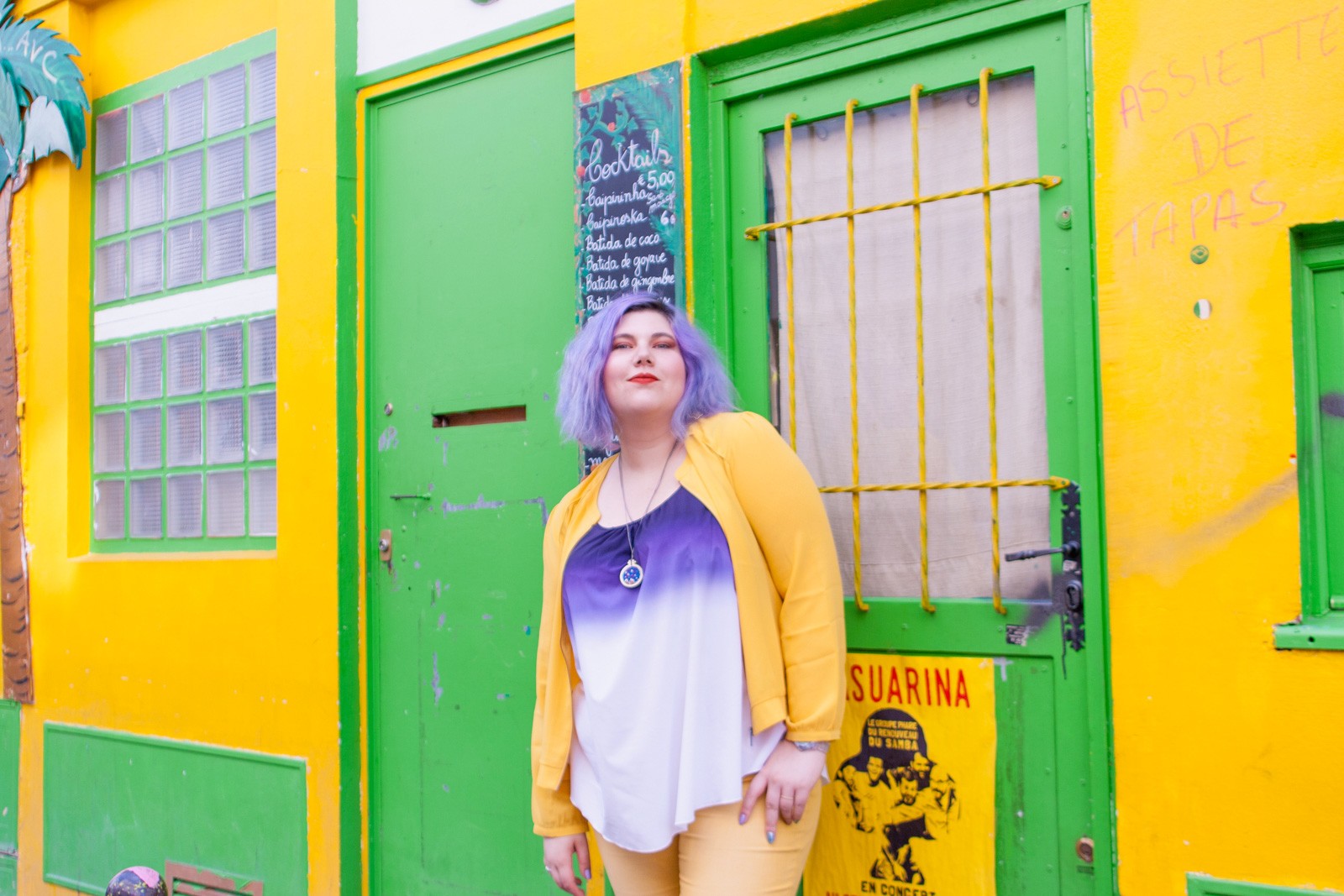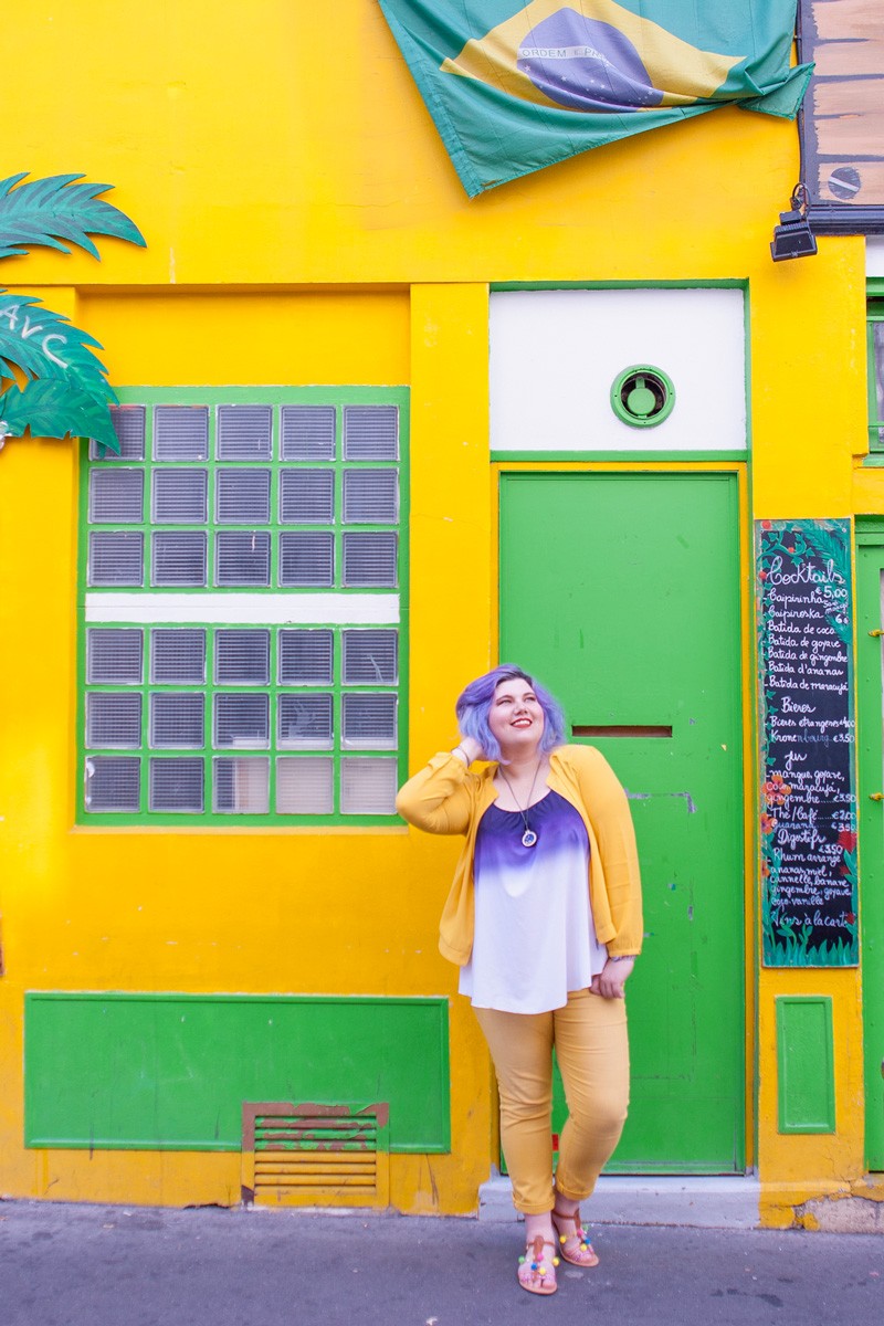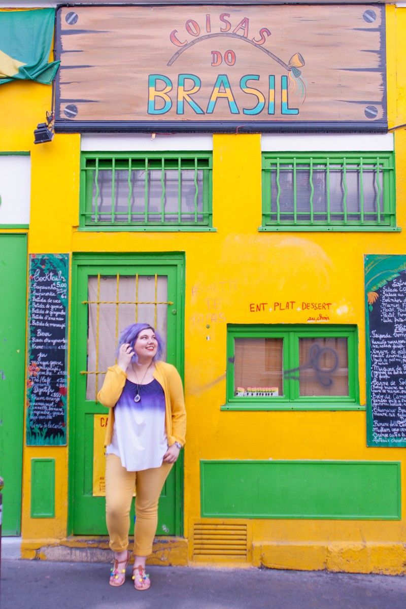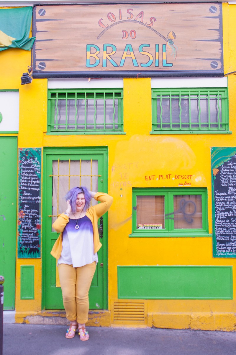 Quand nous sommes arrivées sur place, j’ai craqué pour la façade de ce restaurant brésilien, les couleurs et l’ambiance de ce petit bout de trottoir étaient juste parfaites pour immortaliser ma tenue du jour.