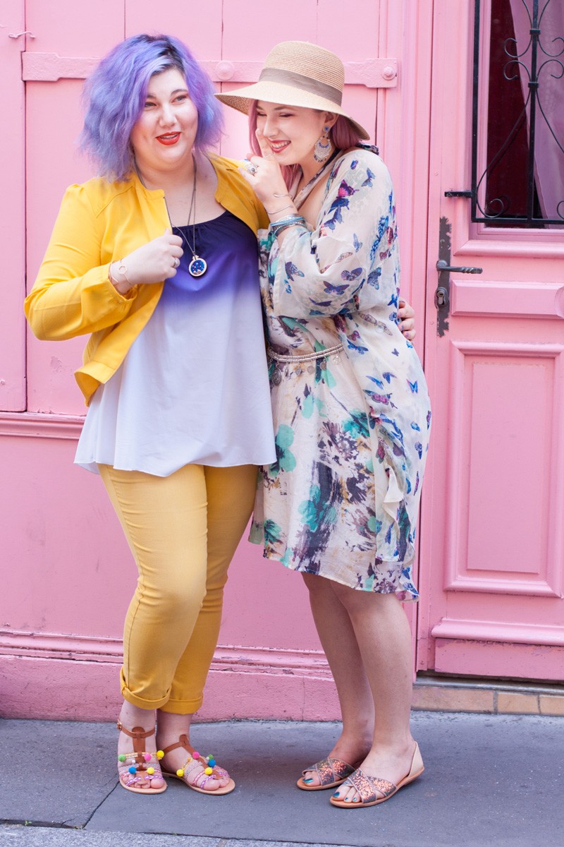 C’est donc une tenue colorblock estivale, qui joue sur la complémentarité de ces deux couleurs, le tout dans un esprit casual, que je vous propose de découvrir aujourd’hui. Nous avons réalisé ces jolies photos avec Alice et Anaïs, dans une jolie petite rue colorée au cœur de Paris.