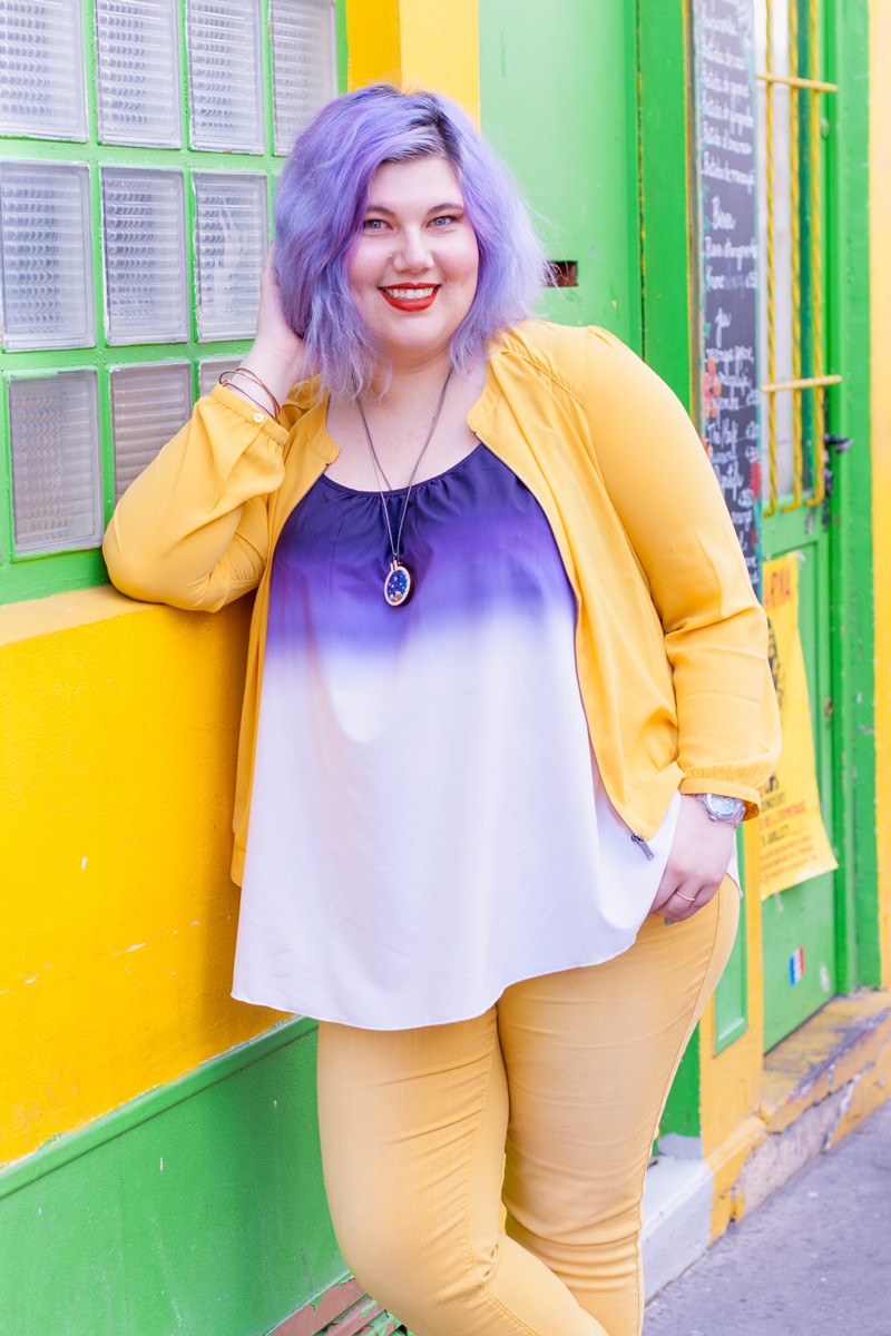 On se retrouve aujourd’hui avec une série de photos aux couleurs éclatantes, qui sent bon l’été et la joie de vivre. J’ose aussi un mariage de couleurs, apparemment audacieux, le combo jaune/violet. Pourtant, si on se réfère au cercle chromatique, le jaune et le violet sont des couleurs complémentaires, du coup le mariage de ces deux couleurs, ne peut que fonctionner.