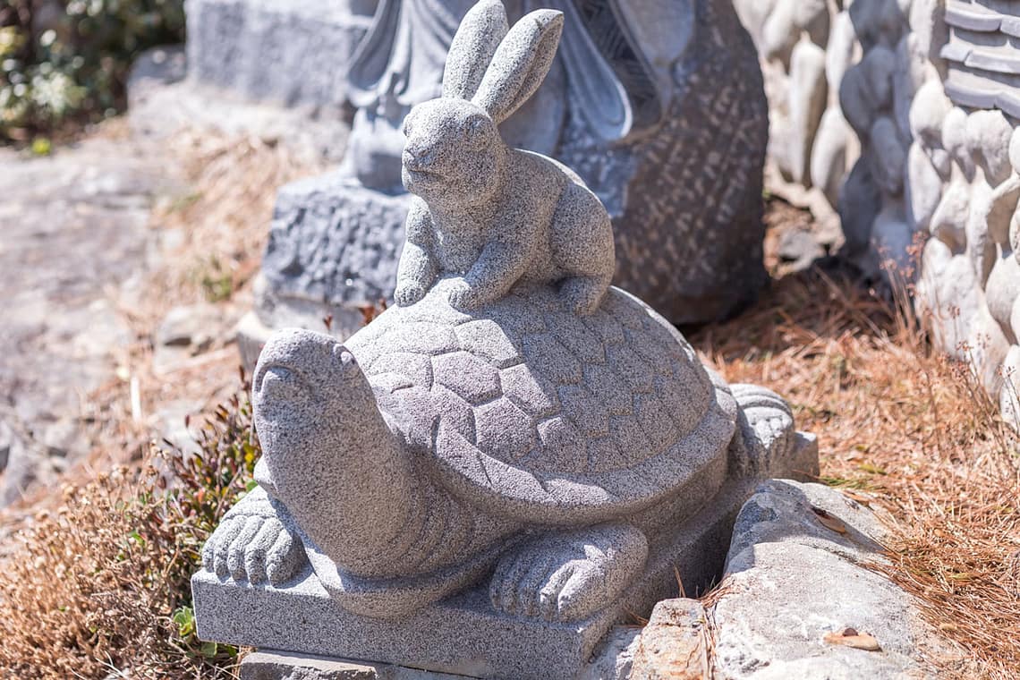 À l’entrée du temple, on est accueilli par un petit marché festif, où on retrouve des stands de street food, et de souvenirs. Une fois passé le marché, les statuts des esprits protecteurs de l’astrologie bouddhiste nous accueillent. Avant de passer par un portail, et de pouvoir enfin entamer une petite descente jusqu’à l’entrée des premiers autels. La vue est époustouflante, après être passé par un petit tunnel de bambous, on se retrouve face à la mer. Elle est grande et majestueuse, s’impose à nous, et nous libère de toute pensée négative. On aperçoit le temple principal au milieu des falaises, et de l’autre côté, un bouddha doré dos à la mer.