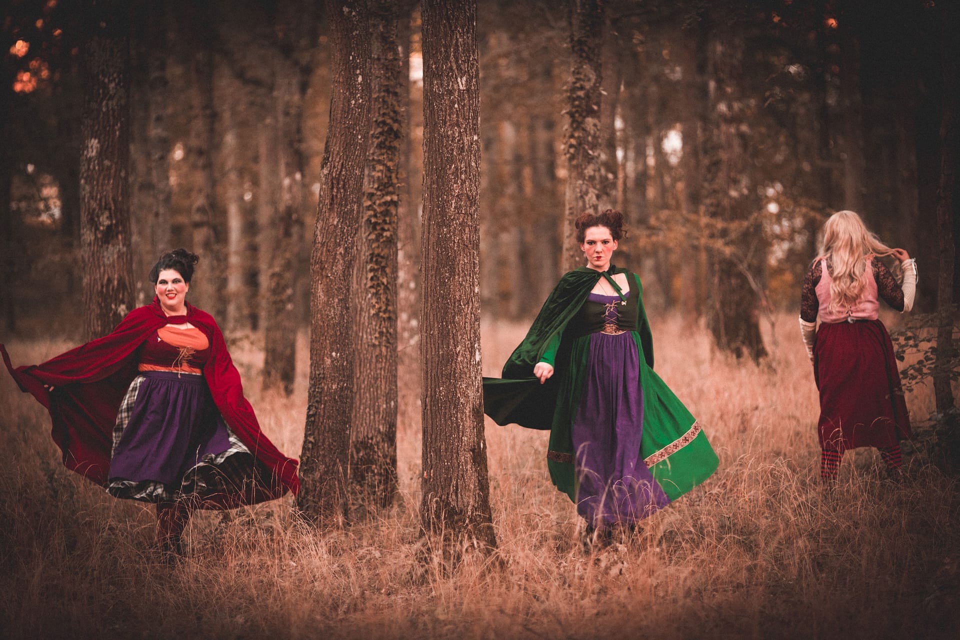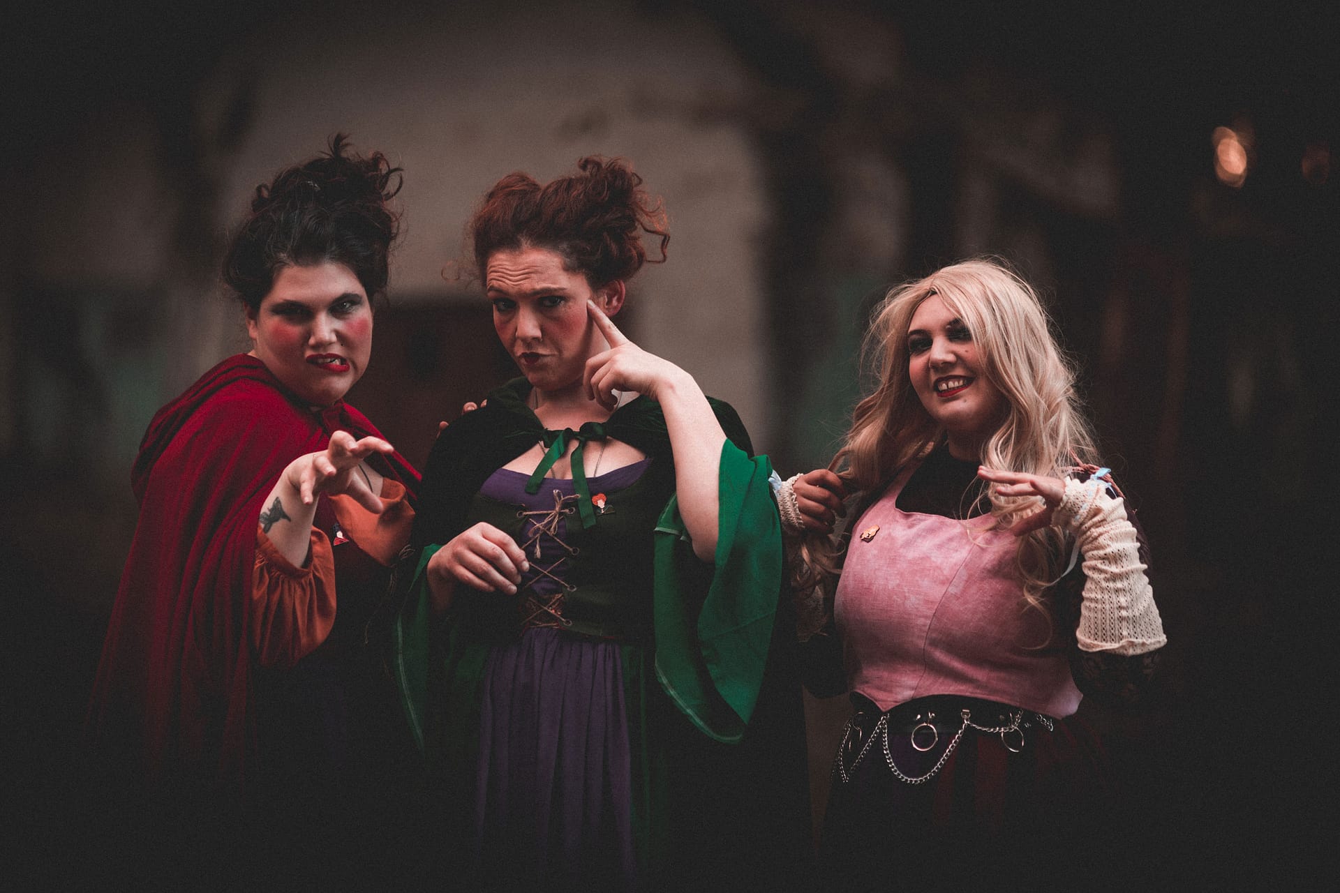 J’en ai parler à mes sœurs, Nathalie et Ercilia qui était tout de suite emballé et partante pour participer au projet Hocus pocus. Pour nous trois, le chois du personnage que l’on allait interpréter était une évidence, car au final, on se retrouve beaucoup dans le caractère des trois sœurs Sanderson. Je serais Mary, Ercilia serait Sarah et Nathtalie serait Winifred.