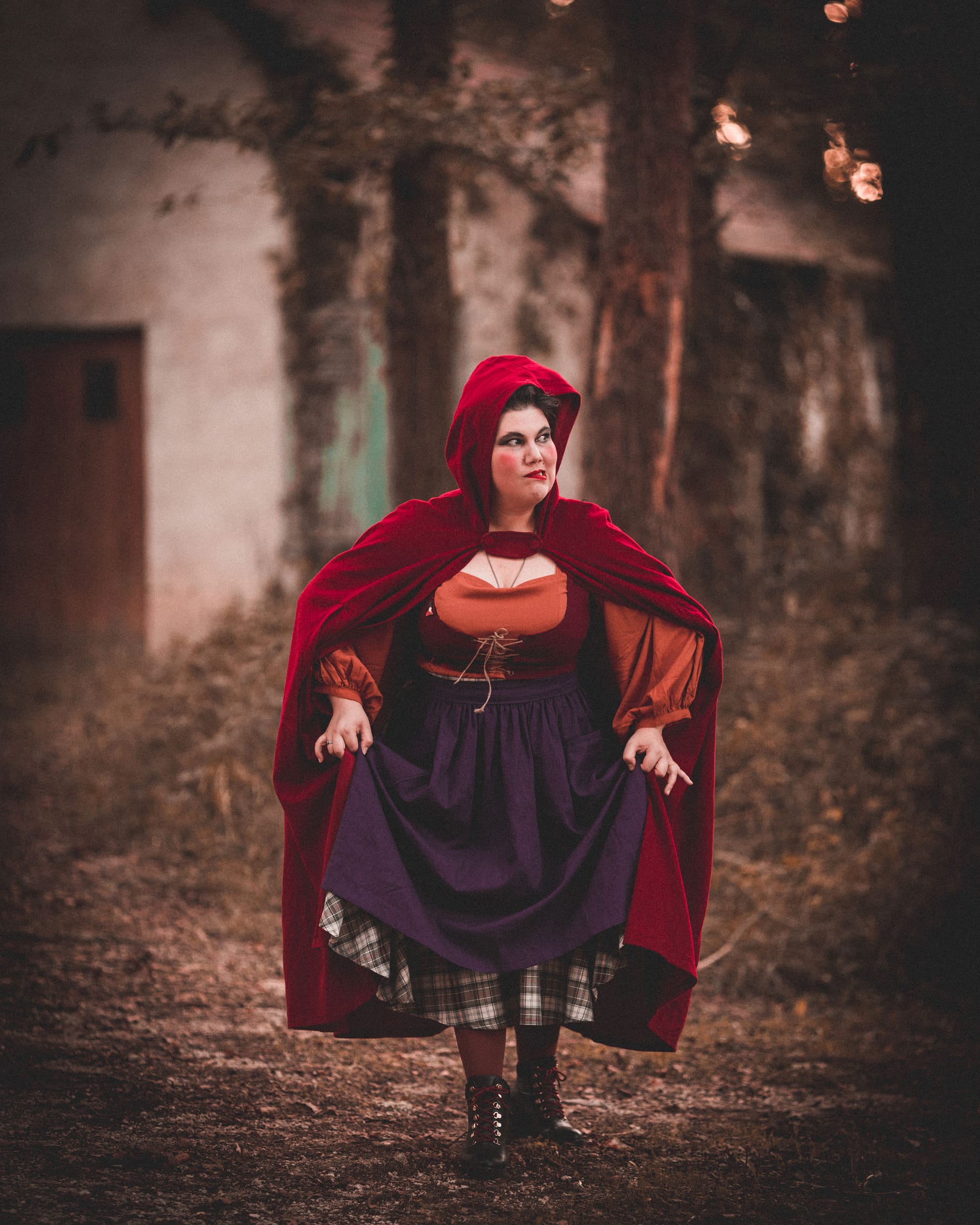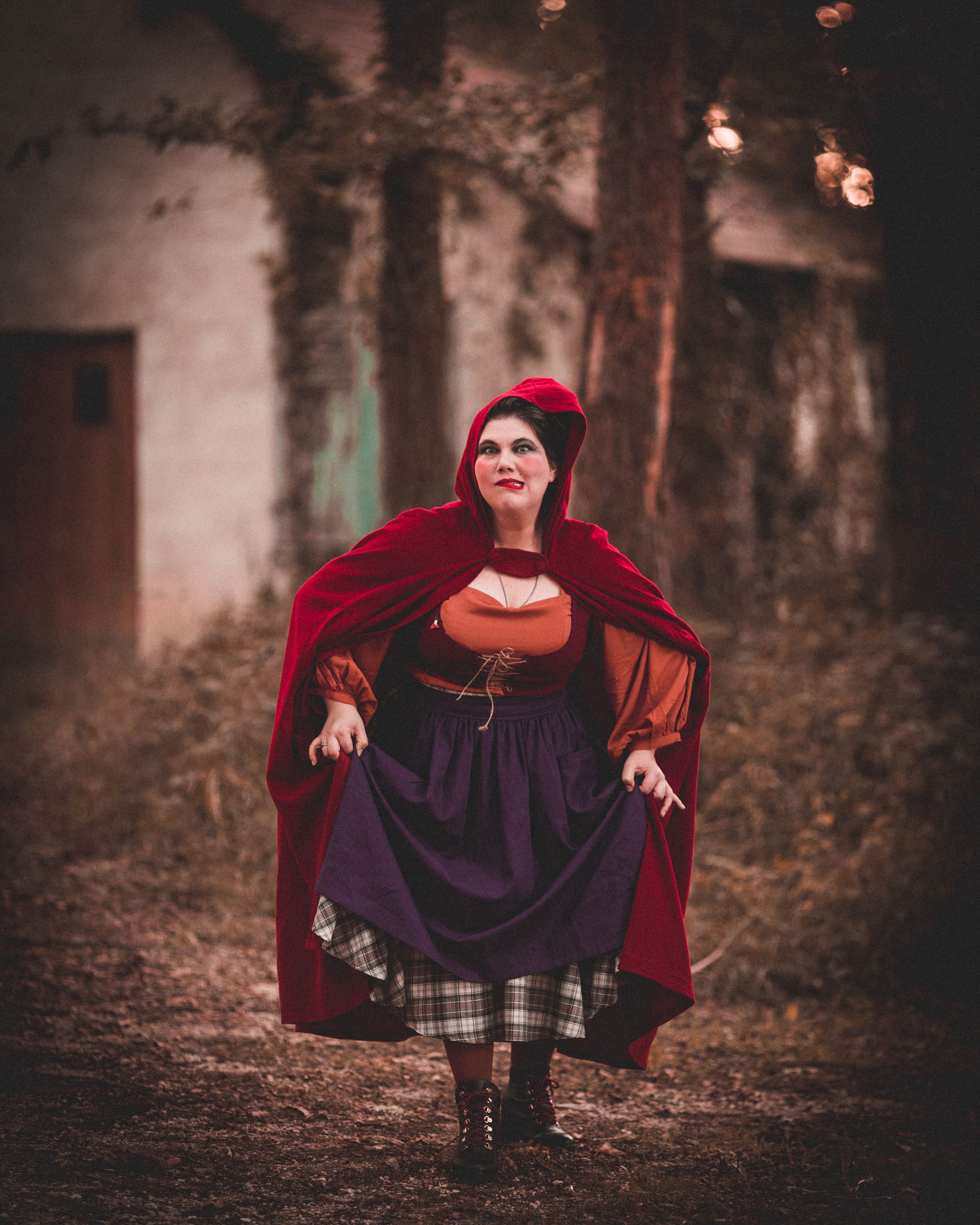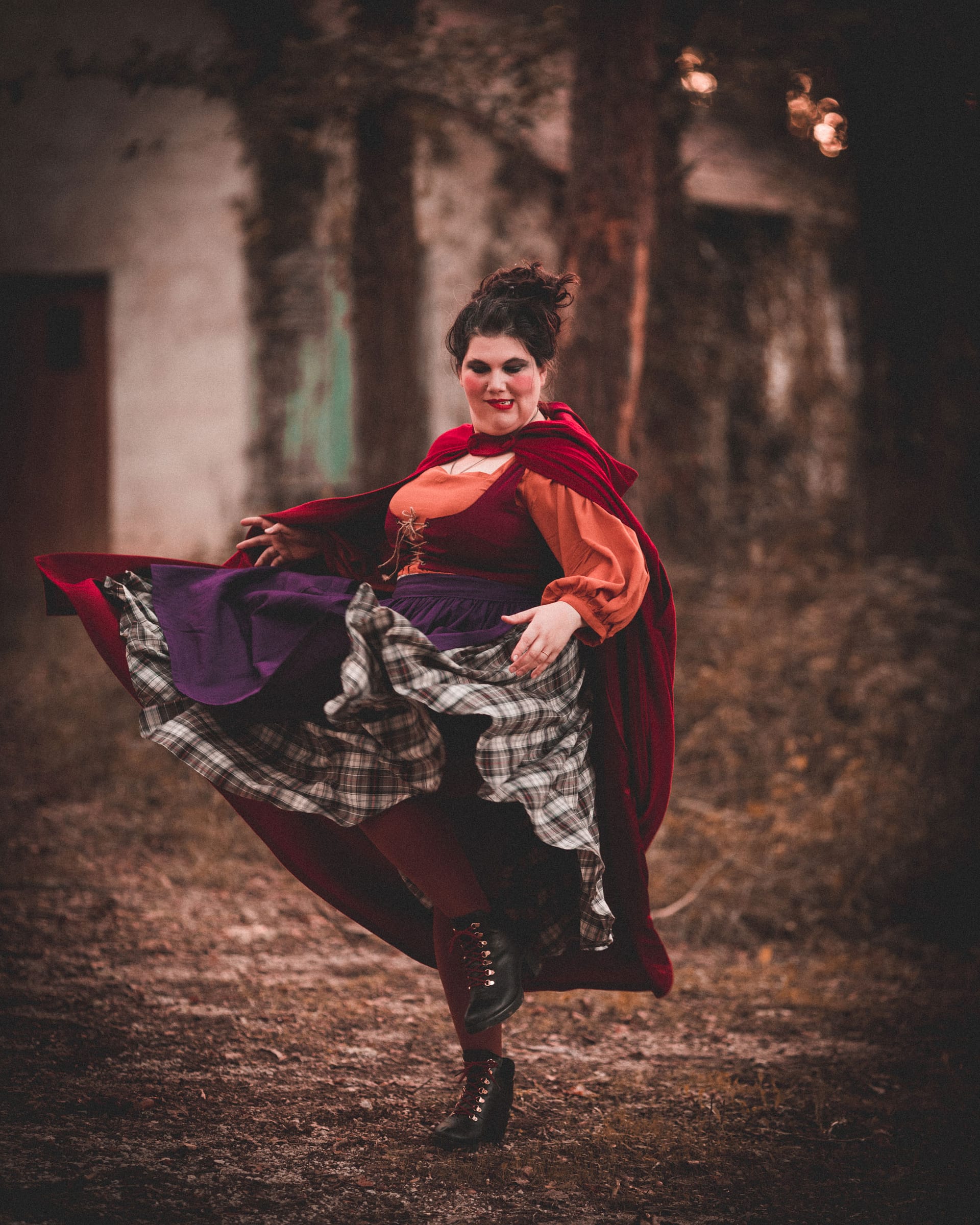 J’ai imaginé et cousu les trois tenues que nous portons, à partir de patrons que j’ai dans ma bibliothèque de patron, et compléter par des accessoires crée pour l’occasion comme le tablier de Mary par exemple. Je ne voulais pas reproduire à l’identique les tenues des trois sœurs Sanderson. Je voulais créer des tenus qui auraient l’esprit de leur costume, et que l’on pourrait porter dans la vie de tous les jours. Et je pense avoir réussi mon pari. Car j’ai déjà porté à plusieurs reprises différents éléments de ma tenue au quotidien.