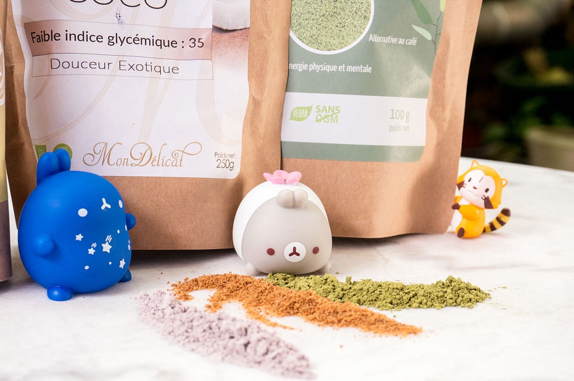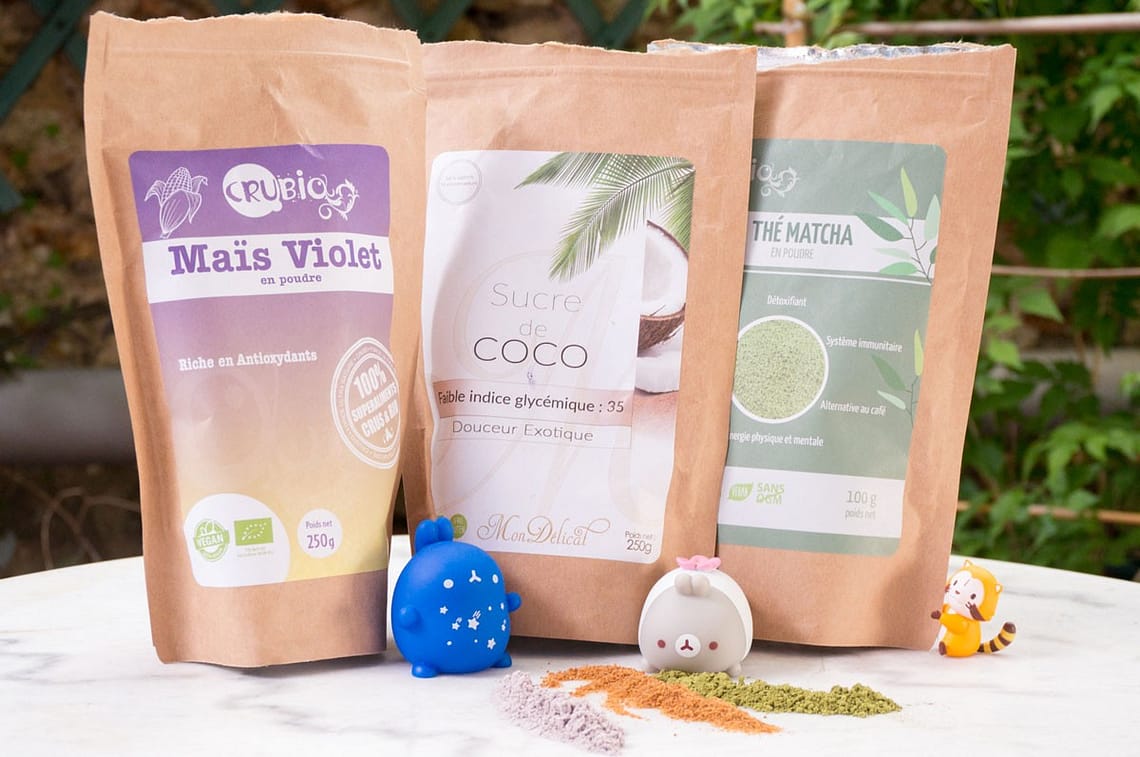 Vous retrouverez tous ces produits dans les recettes de kéfir que je vous propose. J’ai apprécié découvrir la poudre de maïs violette qui apporte un agréable gout de céréale ainsi qu’une jolie couleur violette à ma boisson matinale. Leur sucre de coco est de qualité et très agréable aussi. Mais mon gros coup de cœur va pour leur poudre Matcha, elle sent divinement bon et elle est très forte, une demi-cuillère à café suffit pour apporter couleur et goût à mes préparations.