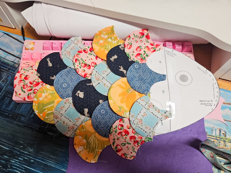 Il y a un mois, j’ai terminé un projet qui m’a occupée plusieurs jours. Depuis il ne me quitte plus, c’est le Swim Along Crossbody Fish Bag. Un sac en forme de poisson pensé pour le patchwork et le matelassage. Ma version est inspiré par le sac poisson d’Animal Crossing et surtout par l’album “Arc-en-ciel, le plus beau poisson des océans” de Marcus Pfister.