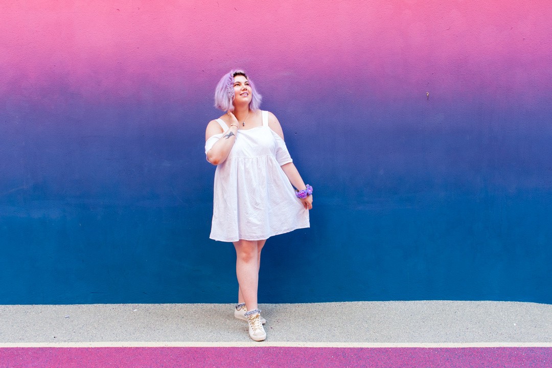 Le Playground est vraiment magnifique, les couleurs sont belles et vives et surtout le résultat en photos est juste sublime. Pour mettre en avant à la fois le lieu et mes vêtements, j’ai composé une tenue toute blanche complétée par des accessoires violets.